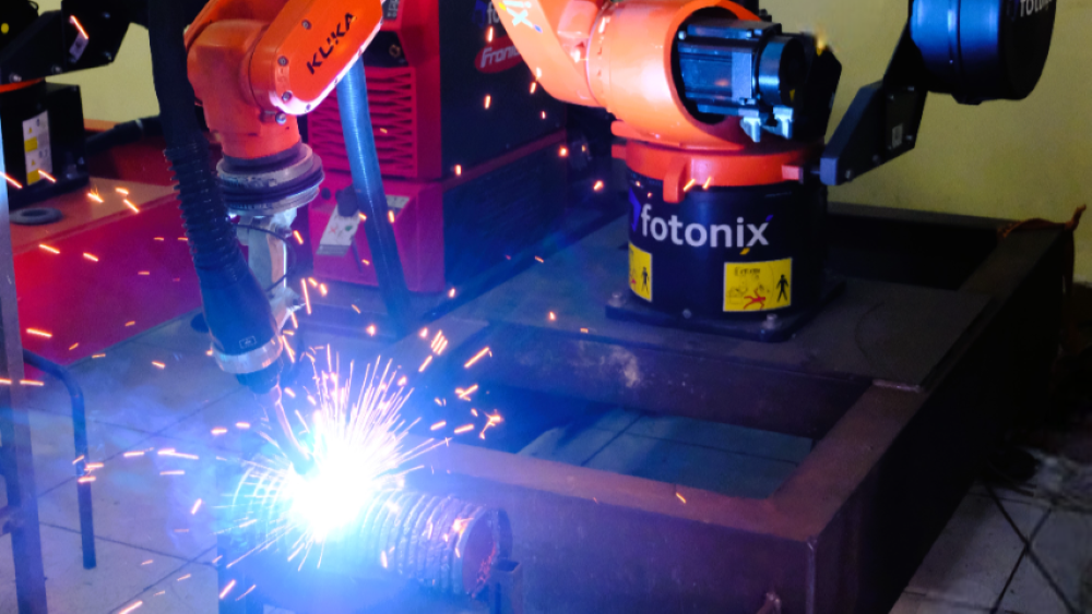 Penggunaan teknologi robotik untuk pengelasan skala produksi malah membawakan Anda penghematan waktu dan uang dibandingkan pengelasan manual. Kemampuan robotik kami sudah tersertifikasi oleh KUKA Robotics Gmbh. dengan terbitnya sertifikat-sertifikat "KUKA Robot Programming 1" dan bahkan "KUKA Robot Programming 2" untuk para welder robotik di Fotonix.